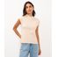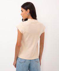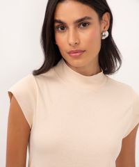 Camiseta confeccionada em malha de algodão com toque leve e macio. A peça possui modelo com caimento reto, gola alta canelada, mangas curtas estilo copinho, acabamento pespontado.