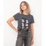 Camiseta confeccionada em malha de algodão mesclada. A peça possui gola careca, mangas curtas, estampa frontal da personagem Minnie Mouse com textura flocada, caimento reto e acabamento pespontado.