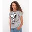 Camiseta confeccionada em malha de algodão listrada. A peça possui gola redonda, estampa frontal do personagem Snoopy, mangas curtas, caimento reto e acabamento pespontado.