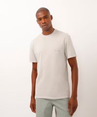 Camiseta confeccionada em moletinho. Modelo com caimento reto, estampa de escrita healing the earth, gola redonda, mangas curtas e barra pespontada.