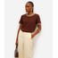 Camiseta feminina confeccionada em malha de viscose com toque macio. A peça possui modelagem reta com caimento solto, decote redondo, mangas curtas, detalhe de acabamento canelado quadriculado em cor contrastante e acabamento pespontado.