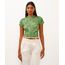 Blusa confeccionada em malha de algodão com toque macio. A peça possui modelagem canelado com caimento justo ao corpo, decote redondo, mangas curtas, padronagem de folhagem e acabamento de frufru.
