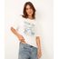 Camiseta feminina confeccionada em malha macia com viscose e estampa localizada escrito "Portofino tennis" na parte frontal. A peça tem modelagem reta e caimento solto ao corpo. O modelo tem decote redondo e mangas curtas.