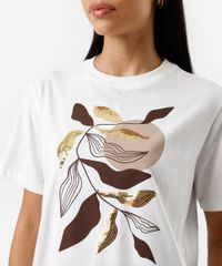 camiseta feminina de algodão estampa com paetê off white