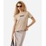 Camiseta feminina confeccionada em malha macia de algodão com estampa localizada escrito "twisted humor" na parte frontal. A peça tem a modelagem reta e o caimento é confortavelmente solto ao corpo. O modelo tem gola redonda em tecido com textura canelada e as mangas são curtas com acabamento pespontado nos punhos e na barra.