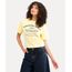 Camiseta feminina confeccionada em malha de algodão com toque macio. A peça possui modelagem reta com caimento levemente solto, decote redondo canelado, mangas curtas, estampa frontal com escrita "exploring Soho's" em cor contrastante e acabamento pespontado.