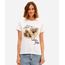 Camiseta feminina confeccionada em malha macia de algodão com estampa localizada de Friends na parte frontal. A peça tem a modelagem reta e o caimento é confortavelmente solto ao corpo. O modelo tem gola redonda em tecido com textura canelada e as mangas são curtas com acabamento pespontado nos punhos e na barra.
