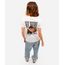 Camiseta feminina confeccionada em malha macia de algodão com estampa localizada de Friends na parte posterior e frontal. A peça tem a modelagem reta e o caimento é confortavelmente solto ao corpo. O modelo tem gola redonda em tecido com textura canelada e as mangas são curtas com acabamento pespontado nos punhos e na barra.