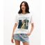 Camiseta feminina confeccionada em malha de algodão com toque macio. A peça possui modelagem reta com caimento solto, decote redondo canelado, mangas curtas, estampa frontal com desenho do quadro "Girl with a pearl earring" de Johannes Vermeer e escrita "masterpiece" em cores contrastantes, acabamento pespontado.