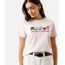 Camiseta feminina confeccionada em malha macia de algodão com estampa localizada da Hello Kitty na parte frontal. A peça tem a modelagem reta e o caimento é confortavelmente solto ao corpo. O modelo tem gola redonda em tecido com textura canelada e as mangas são curtas com acabamento pespontado nos punhos e na barra.
