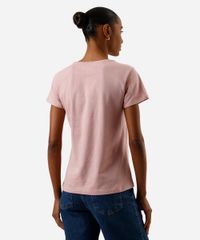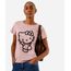 Camiseta feminina confeccionada em malha macia de algodão com estampa localizada com textura aveludada da Hello Kitty na parte frontal. A peça tem a modelagem reta e o caimento é confortavelmente solto ao corpo. O modelo tem gola redonda em tecido com textura canelada e as mangas são curtas com acabamento pespontado nos punhos e na barra.