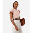 camiseta feminina de algodão manga curta bufante texturizada rosa