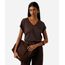 Camiseta feminina confeccionada em malha macia de algodão peruano. A peça tem a modelagem reta e o caimento é confortavelmente solto ao corpo. O modelo tem decote V e as mangas são curtas com acabamento pespontado nos punhos e na barra.