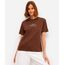 Camiseta feminina confeccionada em malha macia de algodão peruano com estampa localizada escrito "New York City Brooklyn" na parte frontal. A peça tem a modelagem reta e o caimento é confortavelmente solto ao corpo. O modelo tem gola redonda em tecido com textura canelada e as mangas são curtas com acabamento pespontado nos punhos e na barra.
