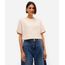 Camiseta feminina confeccionada em malha de algodão peruano com toque macio. A peça básica possui modelagem reta com caimento solto, decote redondo canelado, mangas curtas e acabamento pespontado.