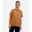 Camiseta feminina confeccionada em malha de algodão peruano com toque macio. A peça básica possui modelagem reta com caimento solto, decote redondo canelado, mangas curtas e acabamento pespontado.
