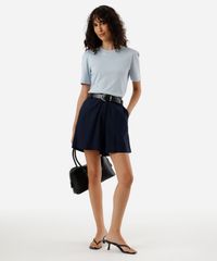 Esta camiseta feminina de manga curta é incrivelmente versátil. Para um look casual e elegante, combine-a com uma calça jeans de cintura alta e tênis. Se a ocasião pede um visual mais arrumado, como uma camiseta feminina social, aposte em uma saia midi ou calça de alfaiataria, finalizando com um blazer e sapatos de salto. A peça transita facilmente do ambiente de trabalho a um encontro com amigos.
