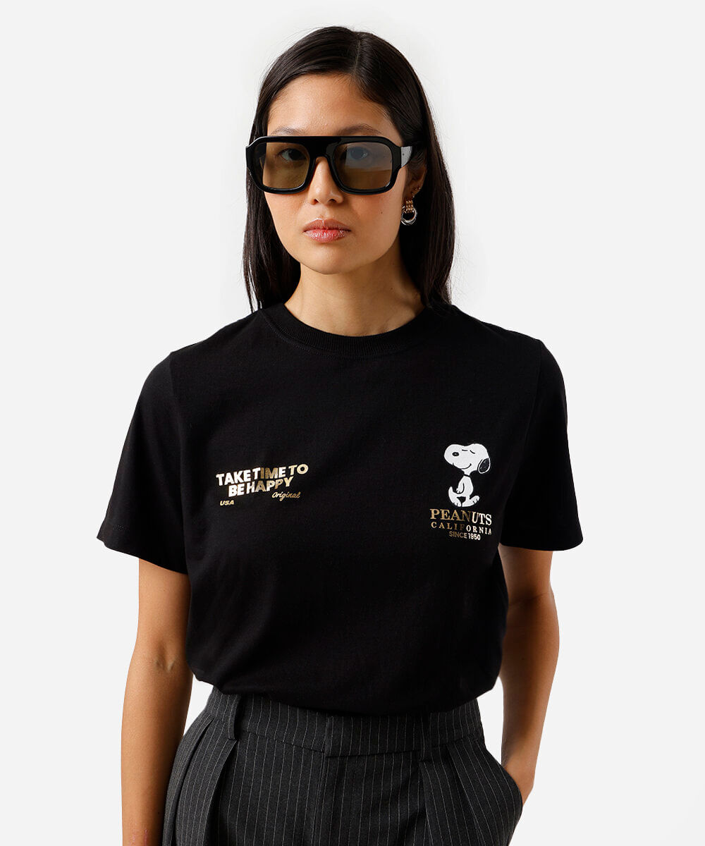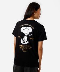 camiseta feminina de algodão snoopy preta