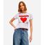 Camiseta feminina confeccionada em malha macia de algodão com estampa localizada Snoopy com textura aveludada na parte frontal. A peça tem a modelagem reta e o caimento é confortavelmente solto ao corpo. O modelo tem gola redonda em tecido com textura canelada e as mangas são curtas com acabamento pespontado nos punhos e na barra.