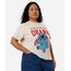 Camiseta feminina confeccionada em malha macia de algodão com estampa localizada do Stitch na parte frontal. A peça tem a modelagem reta e o caimento é confortavelmente solto ao corpo. O modelo tem gola redonda em tecido com textura canelada e as mangas são curtas com acabamento pespontado nos punhos e na barra.