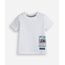 Camiseta infantil confeccionada em malha macia de algodão com estampa localizada de motocicleta na parte frontal e posterior. A peça tem a modelagem reta e o caimento é confortavelmente solto ao corpo. O modelo tem gola redonda em tecido com textura canelada e as mangas são curtas com acabamento pespontado nos punhos e na barra.