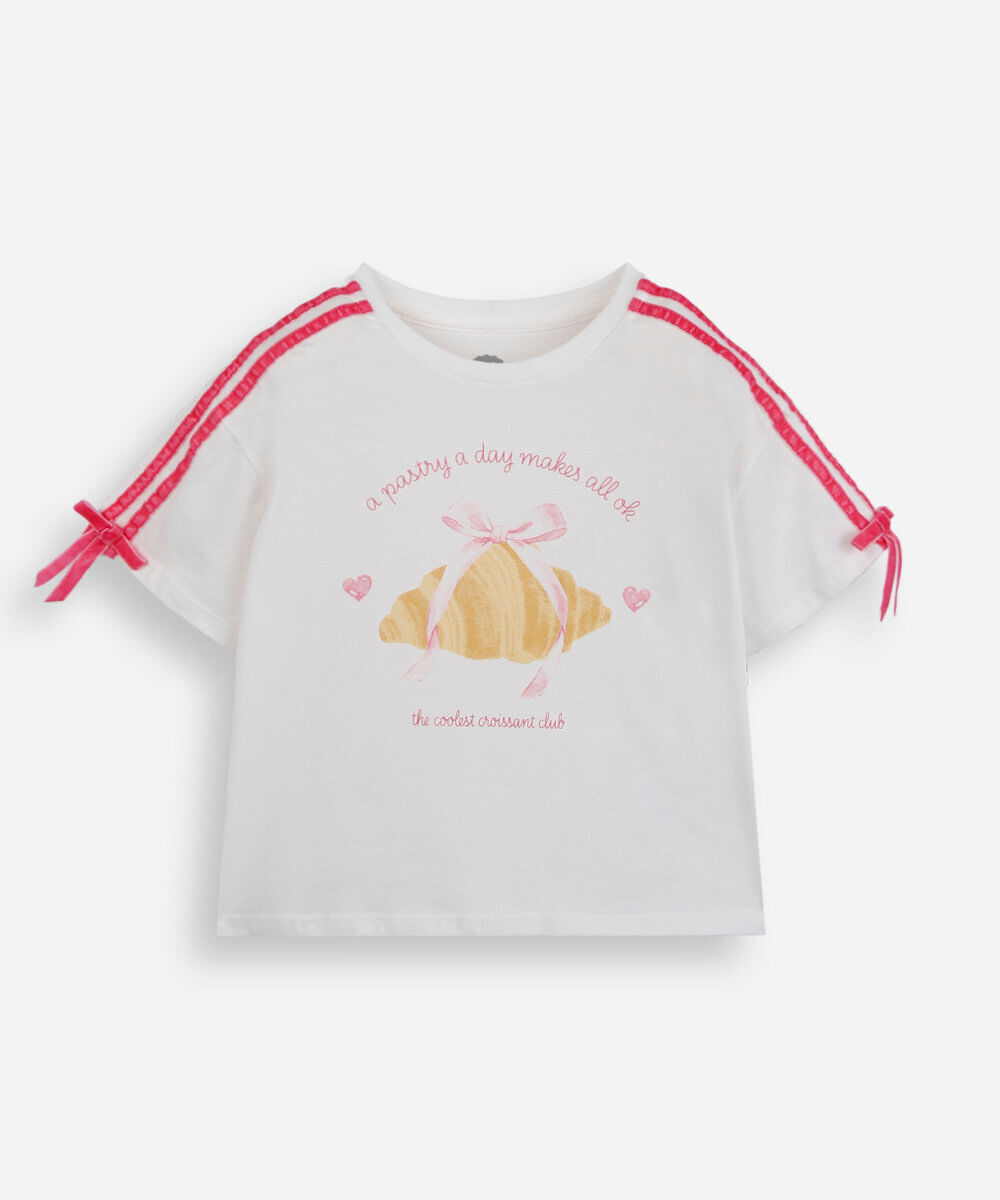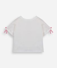 camiseta infantil de algodão manga curta com lacinho off white