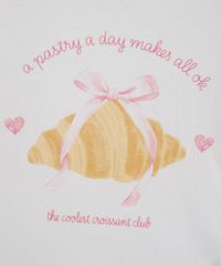 Camiseta infantil confeccionada em malha de algodão com toque macio. A peça possui modelagem reta com caimento levemente solto, decote redondo canelado, mangas curtas, listras texturizadas em relevo nos ombros com detalhe de lacinhos, estampa frontal com desenho e escrita em cores contrastantes, acabamento pespontado.