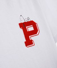 Camiseta infantil confeccionada em malha macia de algodão com estampado localizada do personagem "Snoopy" na parte frontal e posterior. A peça tem a modelagem reta e o caimento é confortavelmente solto ao corpo. O modelo tem gola redonda em tecido com textura canelada e as mangas são curtas com acabamento pespontado nos punhos e na barra.