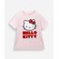 Camiseta infantil confeccionada em algodão com toque macio. Possui modelagem reta, caimento solto e confortável, gola redonda, mangas curtas, estampa frontal temática da personagem Hello Kitty, letras com toque aveludado, e acabamento pespontado.