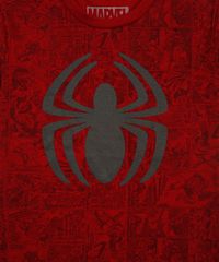 • Estampa corrida com cenas de quadrinhos do Homem-Aranha e o icônico símbolo do herói em destaque na parte frontal.