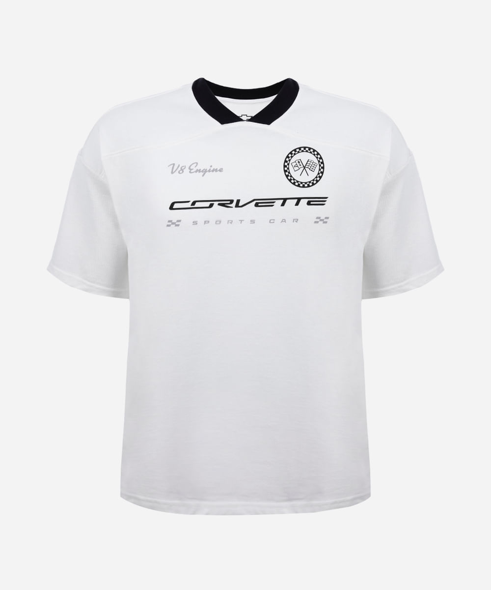 • Estampa temática da Chevrolet Corvette na parte frontal e posterior, perfeita para os fãs de automobilismo.