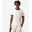 Camiseta masculina confeccionada em malha macia de algodão. A peça tem a modelagem reta e o caimento é levemente solto ao corpo. O modelo tem gola redonda e mangas curtas. Detalhe de acabamento em malha canelada contrastante nos punhos e gola e pesponto na barra.