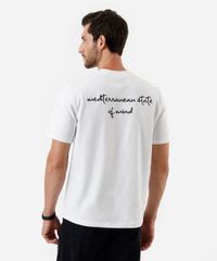• Estampa frontal com tema de praia e frase posterior "mediterranean state of mind", adicionando um toque autêntico e despojado ao visual.