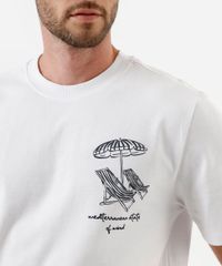 Vista conforto e um estilo descontraído com esta camiseta masculina. Confeccionada em malha de algodão macio, a peça é perfeita para quem busca um item versátil para compor looks casuais com uma inspiração praiana. Seu caimento solto garante liberdade de movimentos, tornando-a uma ótima escolha para os dias mais quentes e momentos de lazer.