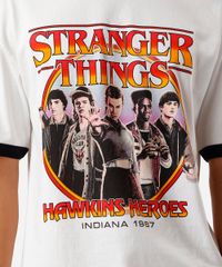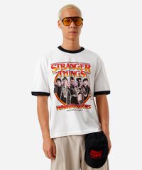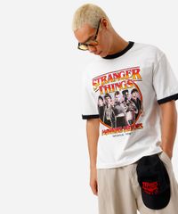 • Estampa frontal exclusiva da série Stranger Things, destacando os personagens como "Hawkins Heroes".