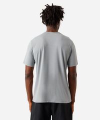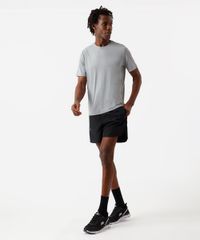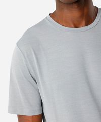 Camiseta masculina confeccionada em malha texturizada de poliamida. A peça tem a modelagem reta e o caimento é confortavelmente solto ao corpo. O modelo tem gola redonda e as mangas são curtas com acabamento pespontado nos punhos e na barra.