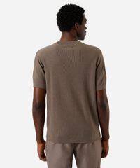 camiseta masculina de tricot manga curta bege