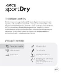 • Confeccionada em poliéster com a tecnologia SPORT DRY, que oferece secagem rápida, respirabilidade e alta absorção de suor.