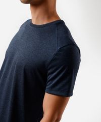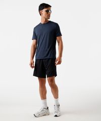 Camiseta masculina confeccionada em malha. A peça tem a modelagem reta e o caimento é confortavelmente solto ao corpo. O modelo tem gola redonda em tecido com textura canelada e as mangas são curtas com recortes nos ombros e acabamento pespontado nos punhos e na barra.