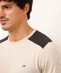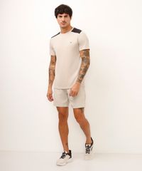 camiseta masculina esportiva ace manga curta com recorte bicolor bege