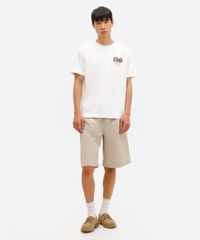 • Gola redonda clássica com acabamento canelado e mangas curtas.