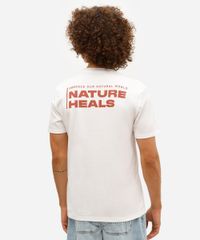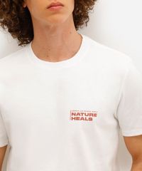 • Estampa frontal discreta e estampa posterior em lettering com a frase "Nature Heals".