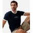 camiseta muscle fit masculina de algodão bordada canelada azul