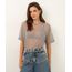 Camiseta feminina confeccionada em tule com fios de lurex prateados com toque leve. A peça possui modelagem oversized com caimento reto e solto, decote redondo, mangas curtas e acabamento canelado. Esta peça não possui forro.