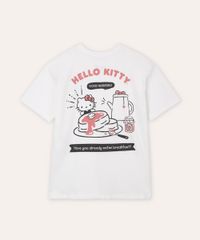 • Estampa frontal discreta e estampa posterior grande e divertida da Hello Kitty com tema de café da manhã.