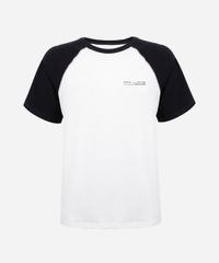 • Modelagem raglan com mangas curtas em cor contrastante, um clássico do estilo urbano.