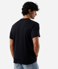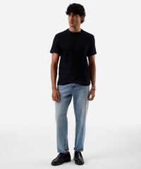 Camiseta masculina confeccionada em malha canelada macia com algodão. A peça tem a modelagem slim fit, com construção reta e o caimento é confortavelmente solto ao corpo. O modelo tem gola redonda e as mangas são curtas com acabamento pespontado nos punhos e na barra.