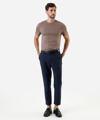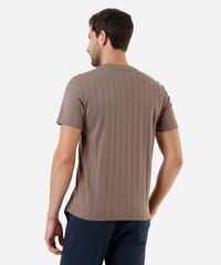 camiseta slim fit masculina de algodão peruano manga curta canelada marrom