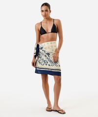 Canga feminina confeccionada em tecido com toque fluido e leve. O modelo possui formato quadrado com medida 138cm x 138cm, estampa de arabescos em cor contrastante e acabamento pespontado. Composição: 92% poliéster e 8% elastano. Instruções de lavagem: - Lavagem manual - Proibido o alvejamento - Não secar em tambor - Secagem em varal na horizontal - Passar à temperatura baixa - Limpeza com tetracloroetileno e solventes do símbolo F, processo suave