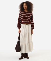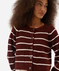 cardigan feminino de tricot com bolsos listrado vinho
